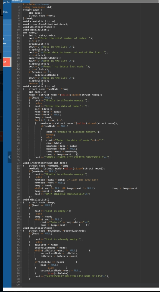cout<<("SINGLY LINKED LIST CREATED SUCCESSFULLY\n");