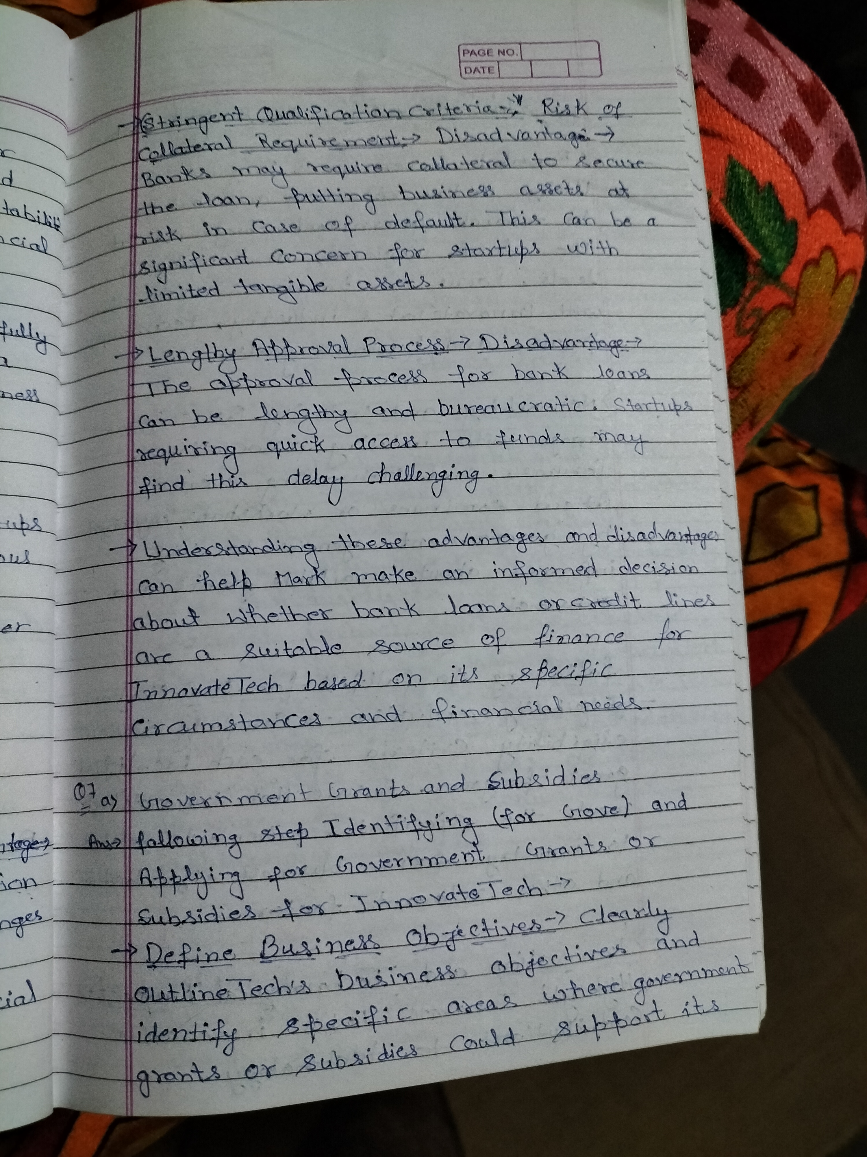 Bank Loans and Lines of Credit: a. How does Mark evaluate the feasibility of obtaining a bank loan or line of credit for InnovateTech, considering the startup's financial standing and future projections? b. What are the advantages and disadvantages of using bank loans or credit lines as a source of finance for the startup?